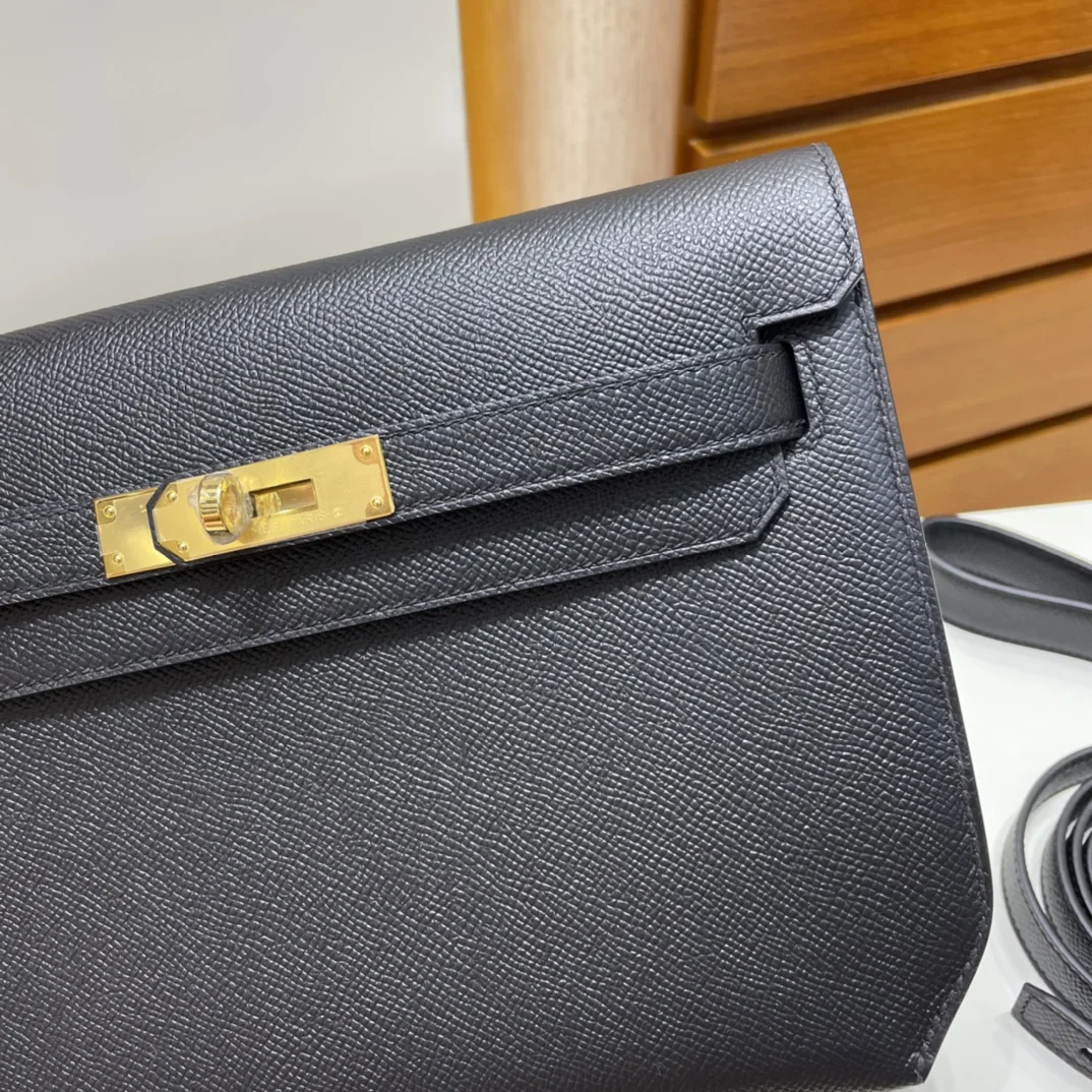 HERMES Kelly Depeches 25cm Epsom Black Gold Hardware