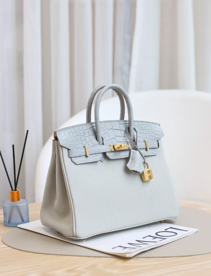 Hermes Birkin 25 Touch Bag Gris Perle Crocodile/Togo Leather Gold Hardware $199.00 -