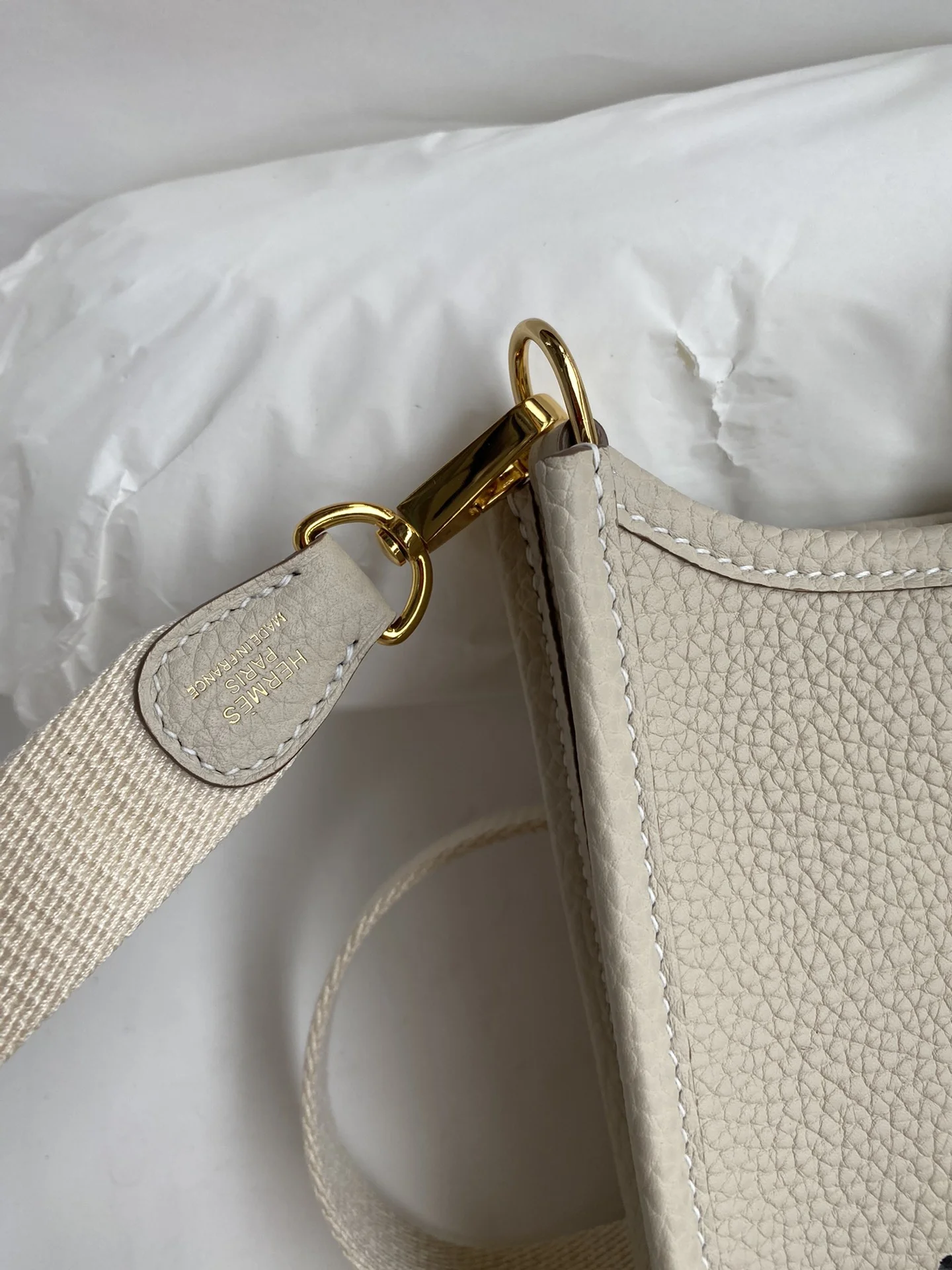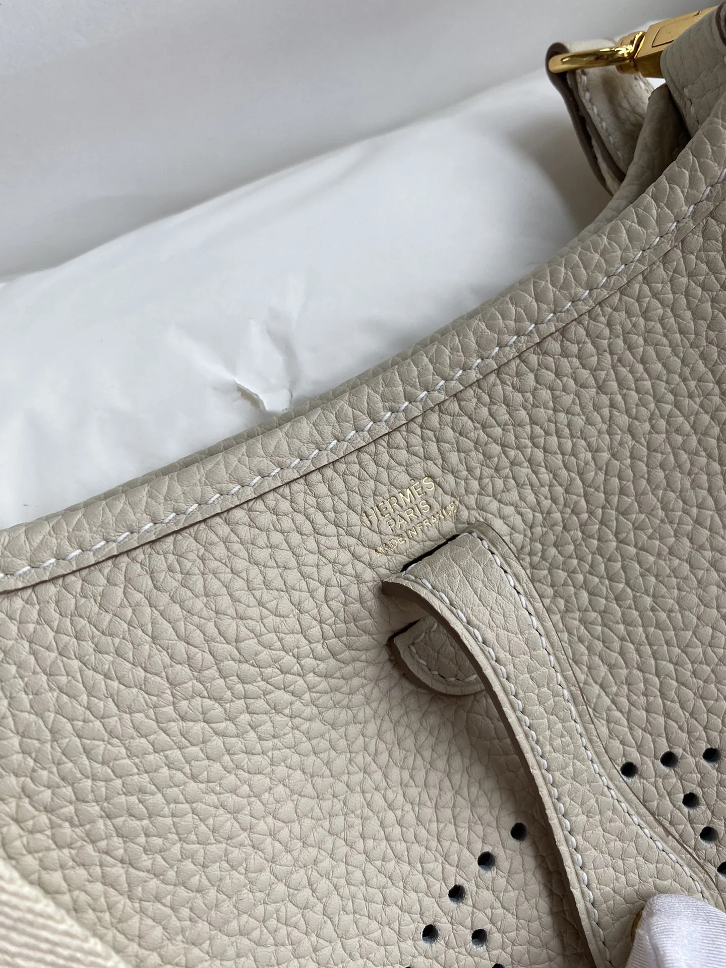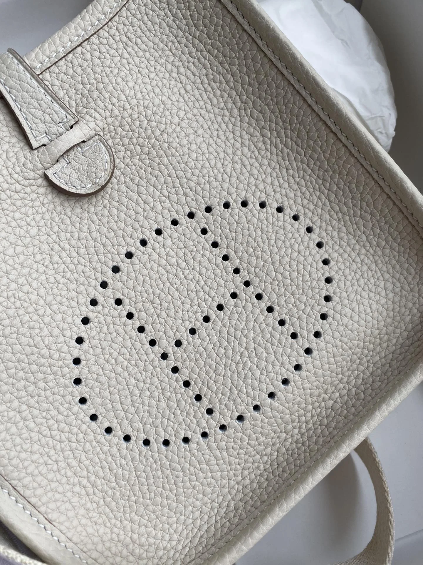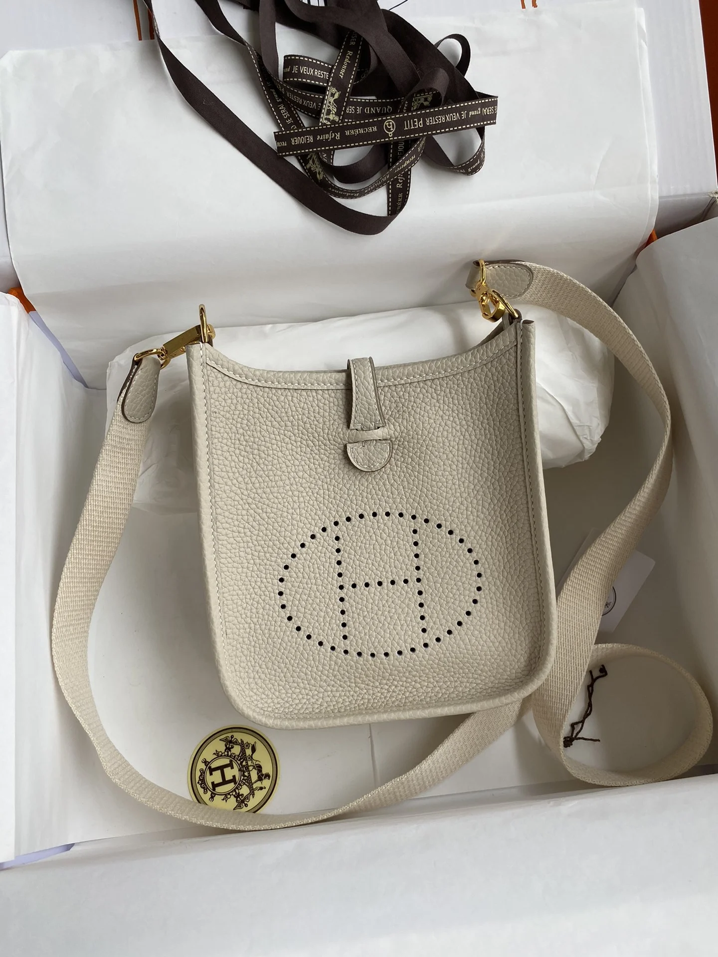 HERMES Evelyn 17cm TC Leather Milk White Gold Hardware