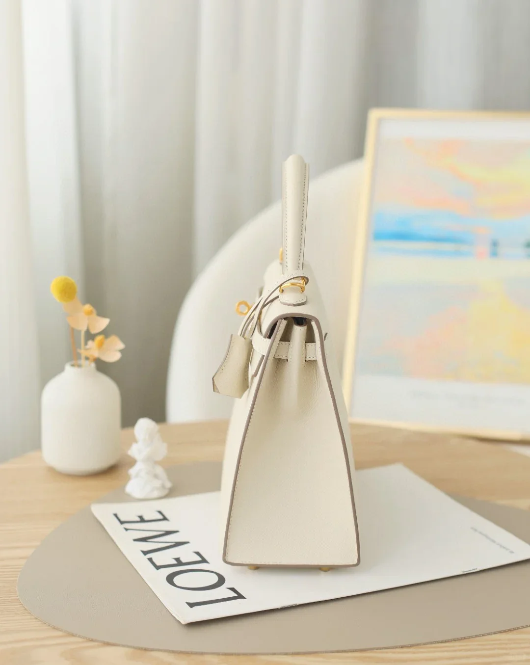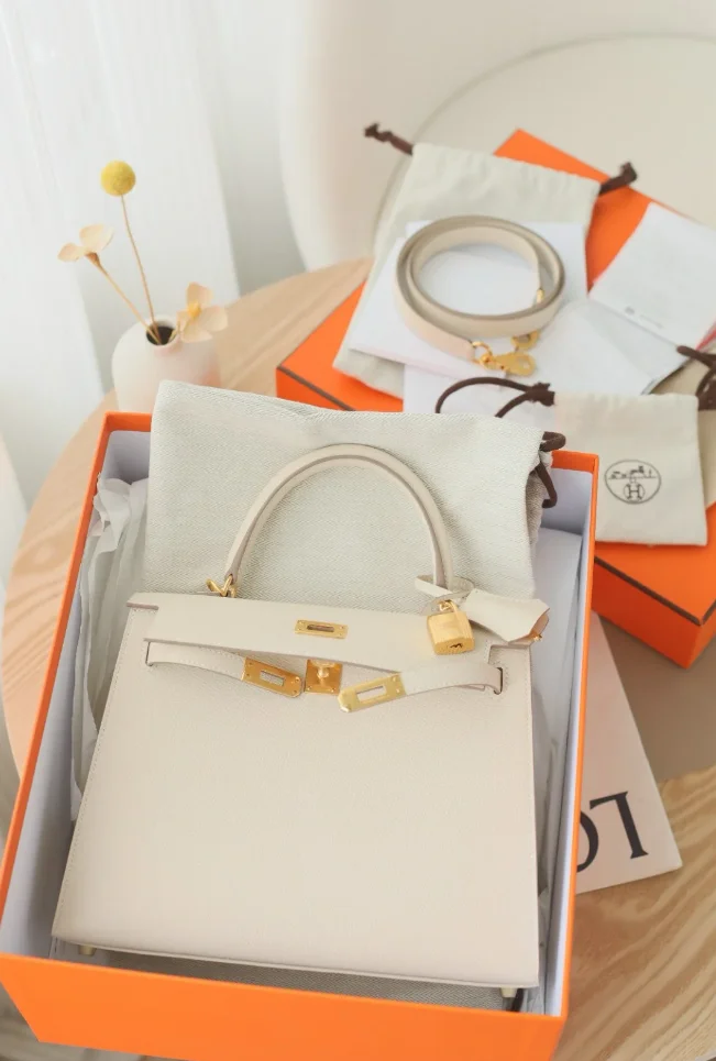 Hermes Kelly 25 Sellier Epsom Bag Craie Gold Hardware