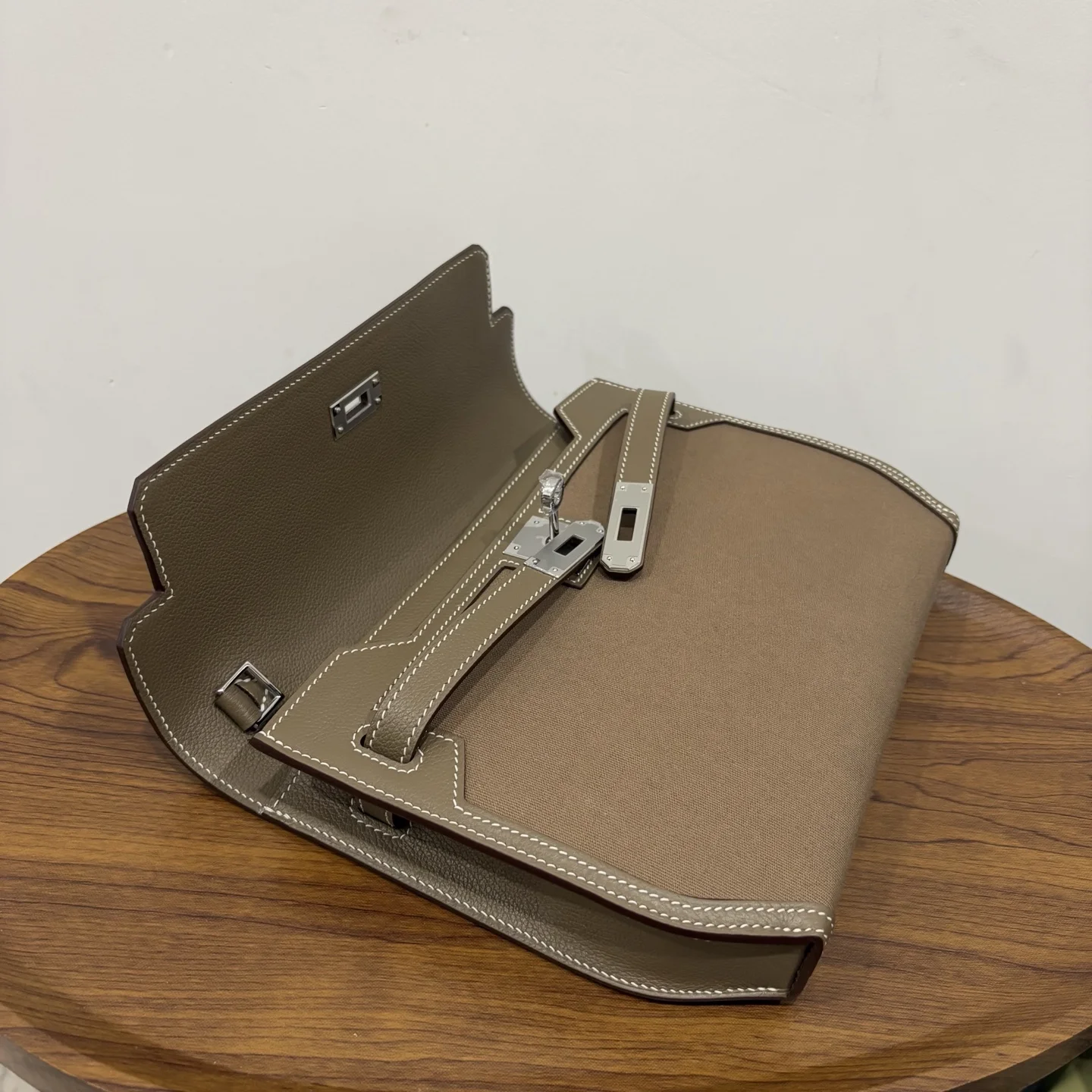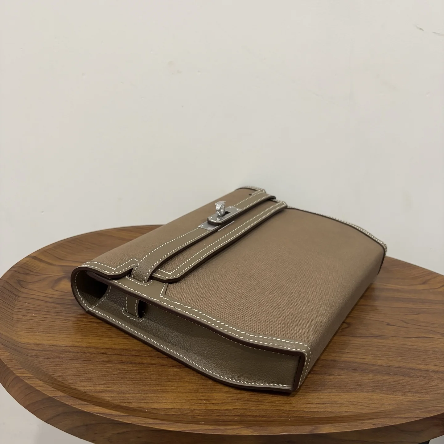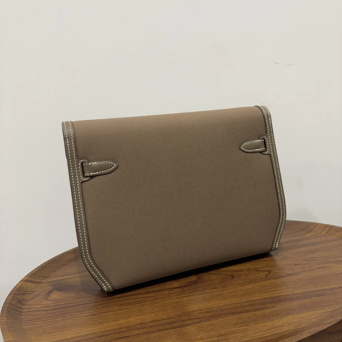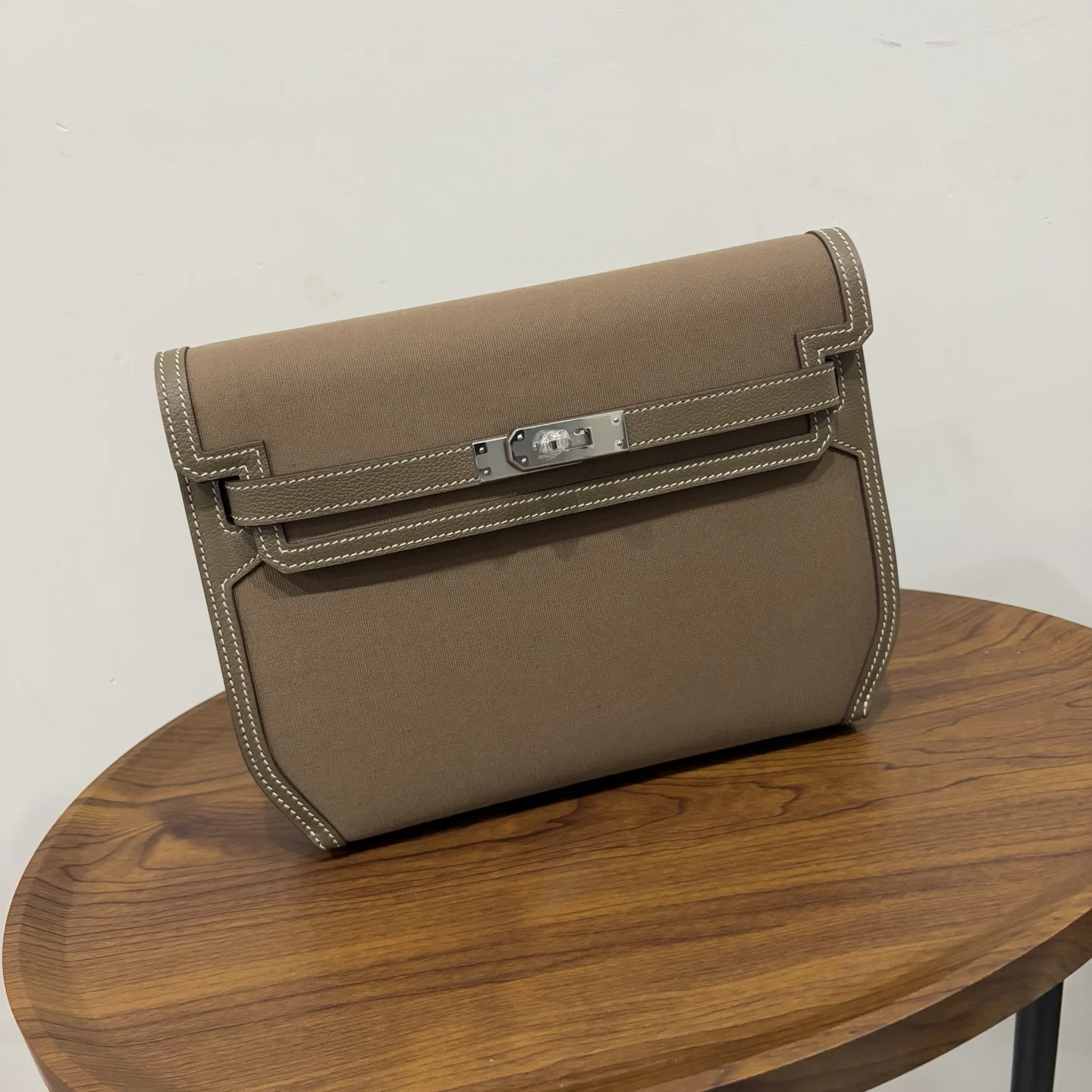 HERMES Kelly Depeches 25 Canvas Leather Etoupe
