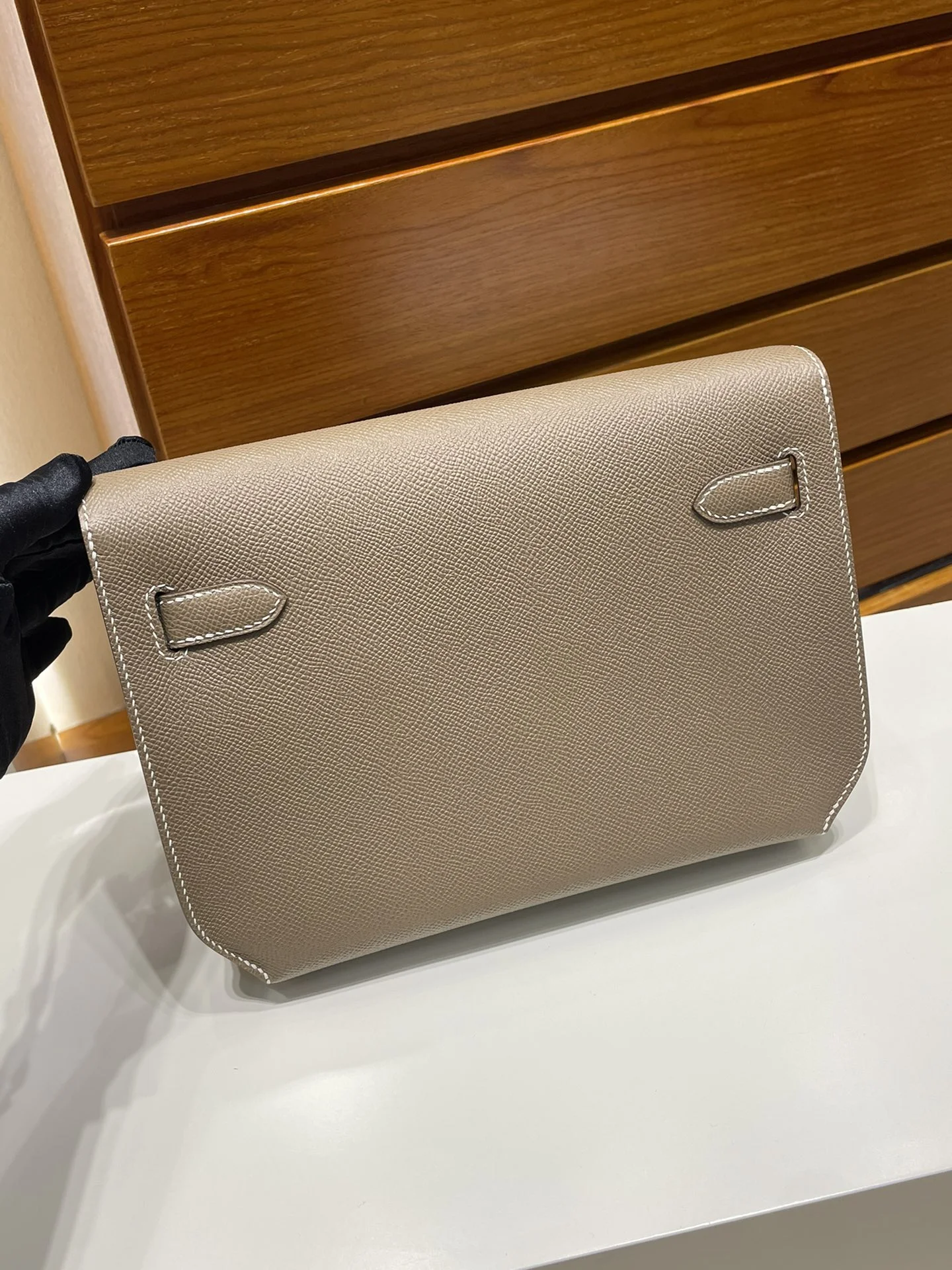 HERMES Kelly depeches 25cm Epsom Etoupe Silver Hardware
