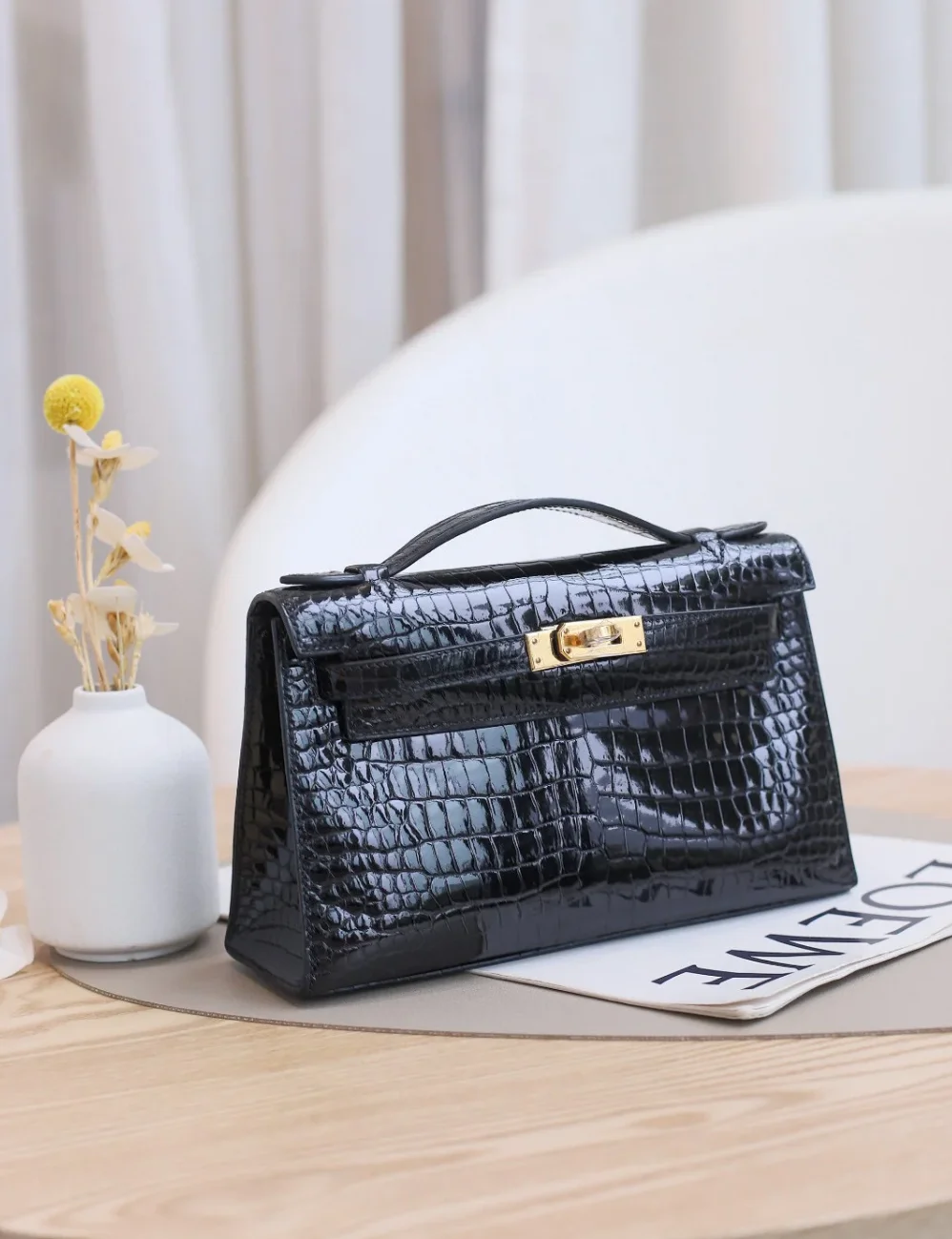 Hermes Kelly 20cm Sellier Bag Black Crocodile Gold Hardware $179.00 -