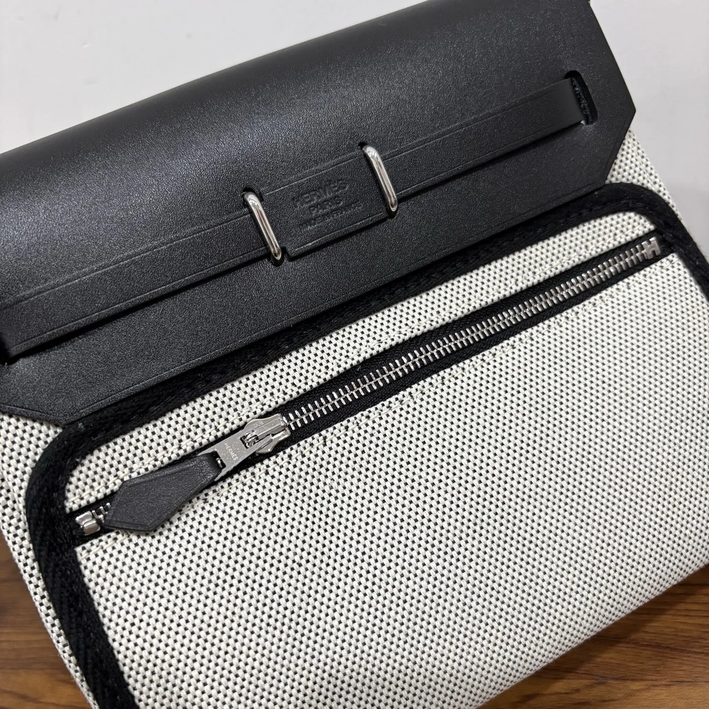 HERMES Mini Herbag Beige/Black Silver Hardware
