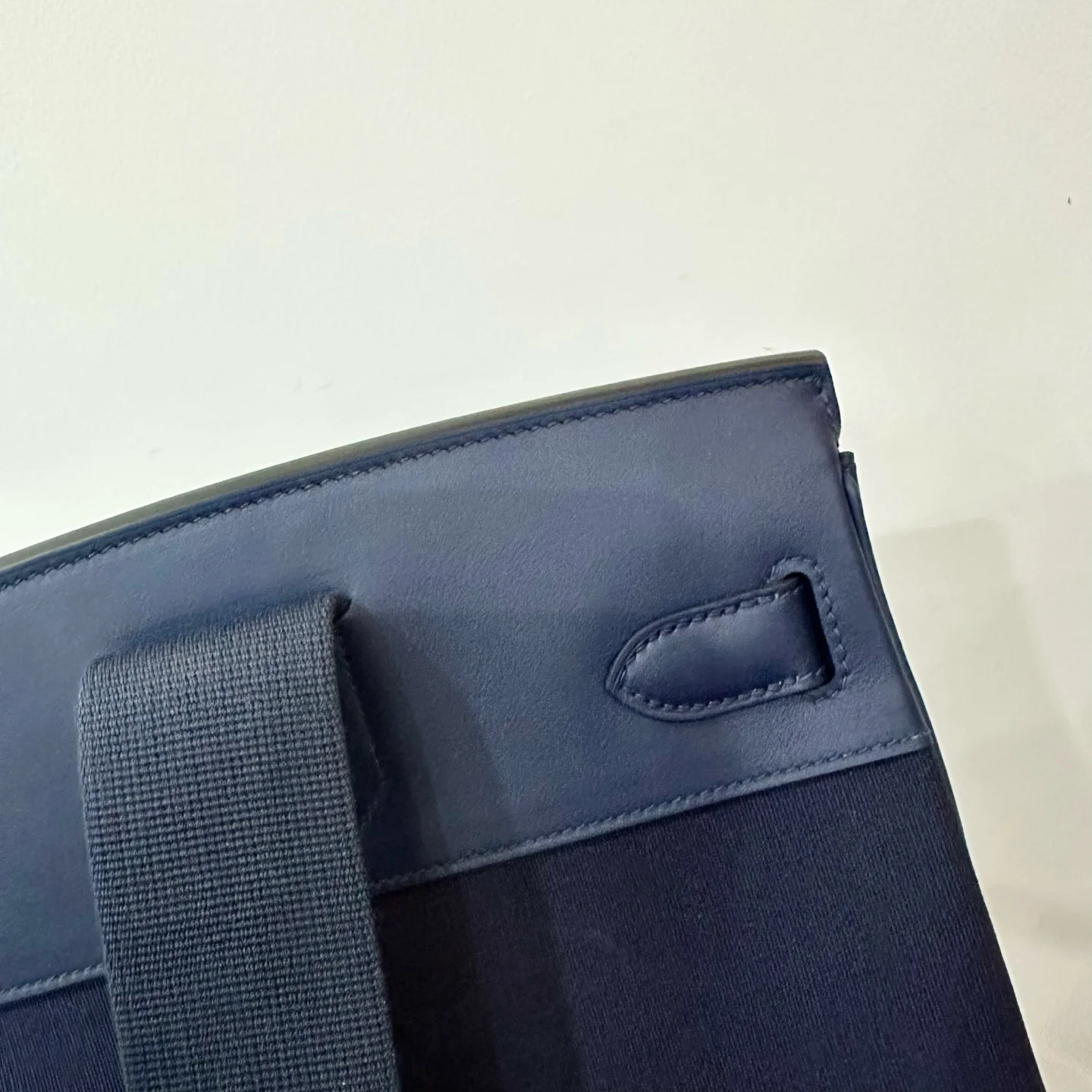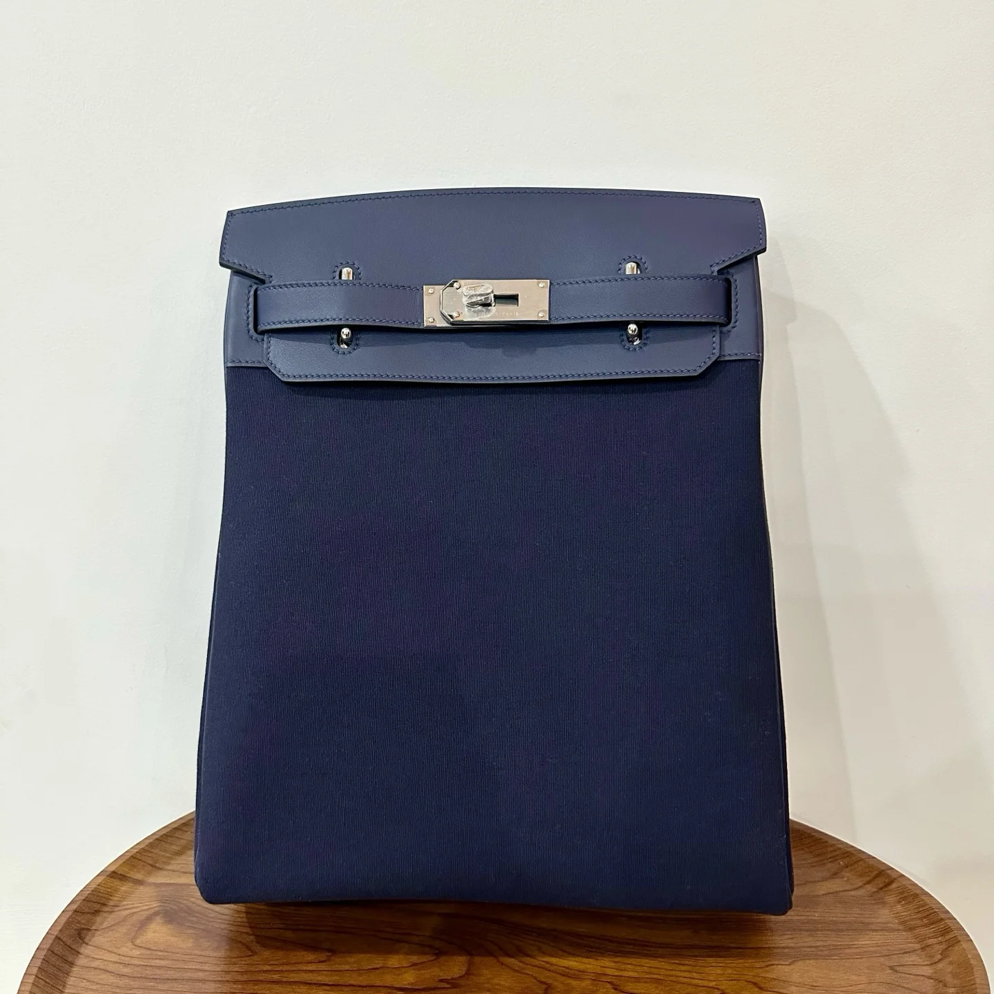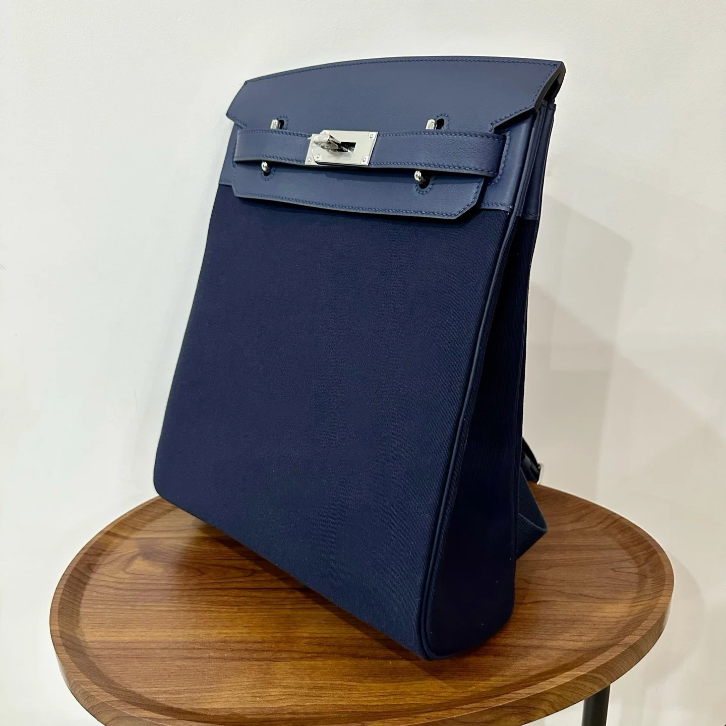 HERMES Woolycot Backpack Canvas & Swift Leather Sapphire Blue