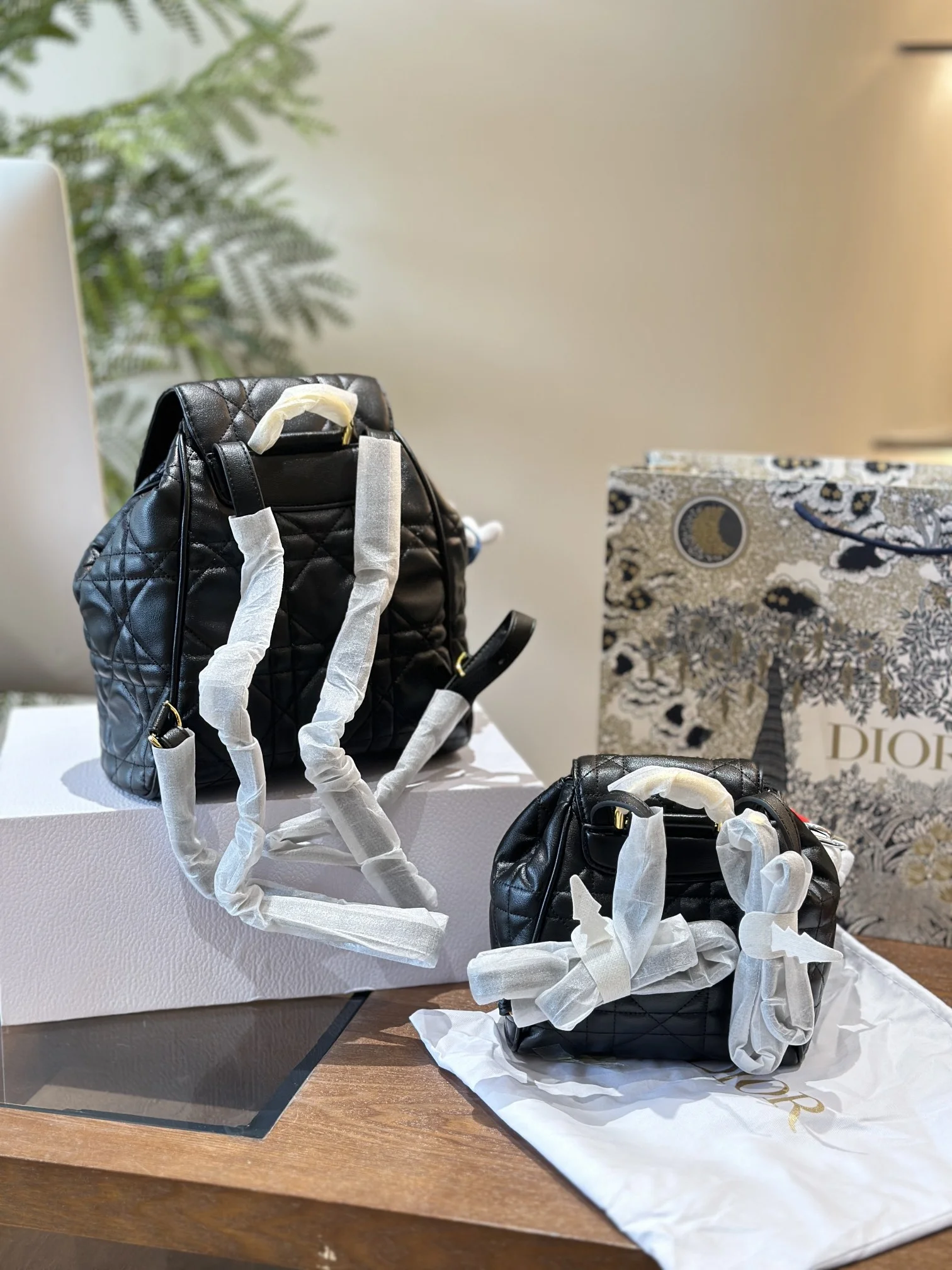 DIOR Caro Backpack, Macrocannage, Medium 23x25x11 / Small 20x18x8