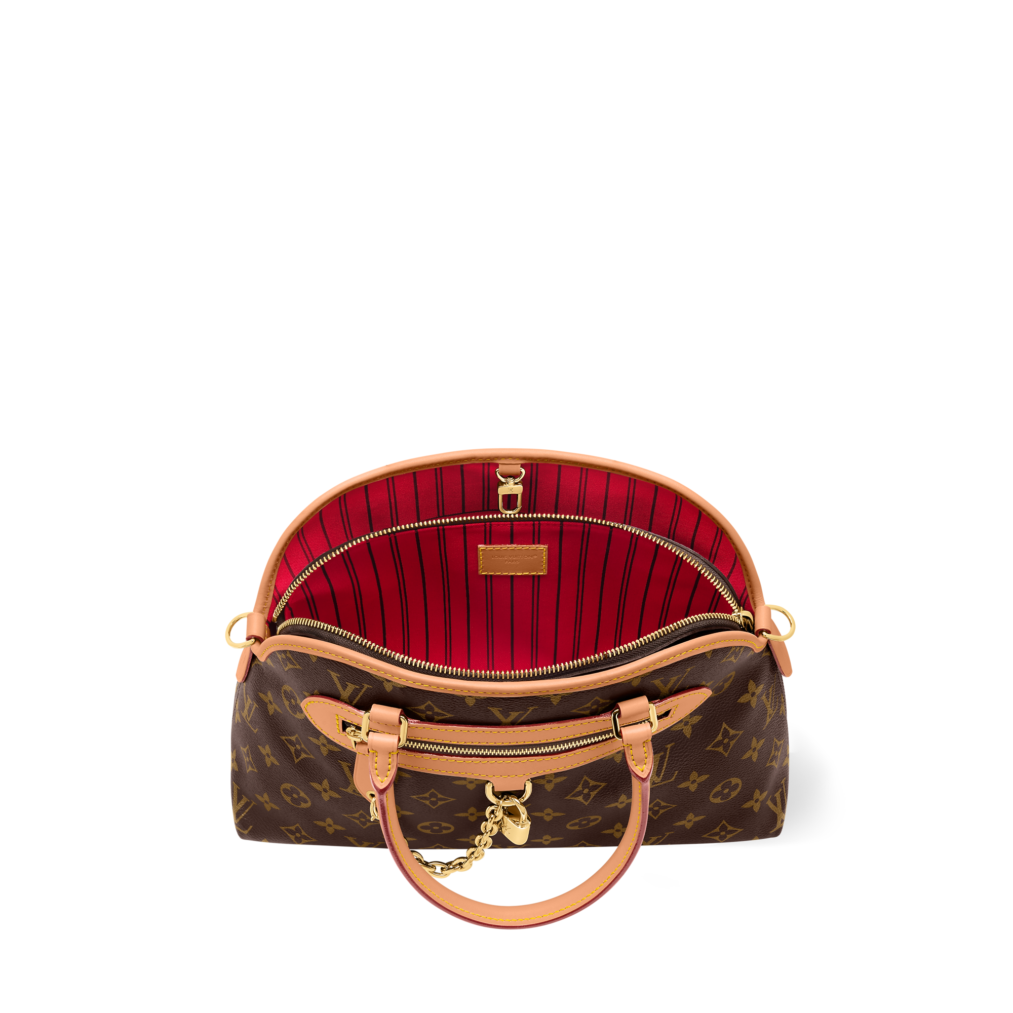 Evoking Parisian chic, this Ever More PM is inspired by the sleek lines of the Alma handbag. Made from signature Monogram canvas, it is accented with a decorative gold-toned chain and cowhide trims, and comes with a removable strap to ensure plenty of carry options. Functional and sophisticated, this tote design also includes a removable Monogram pouch, which can be used as an interior compartment or carried solo.