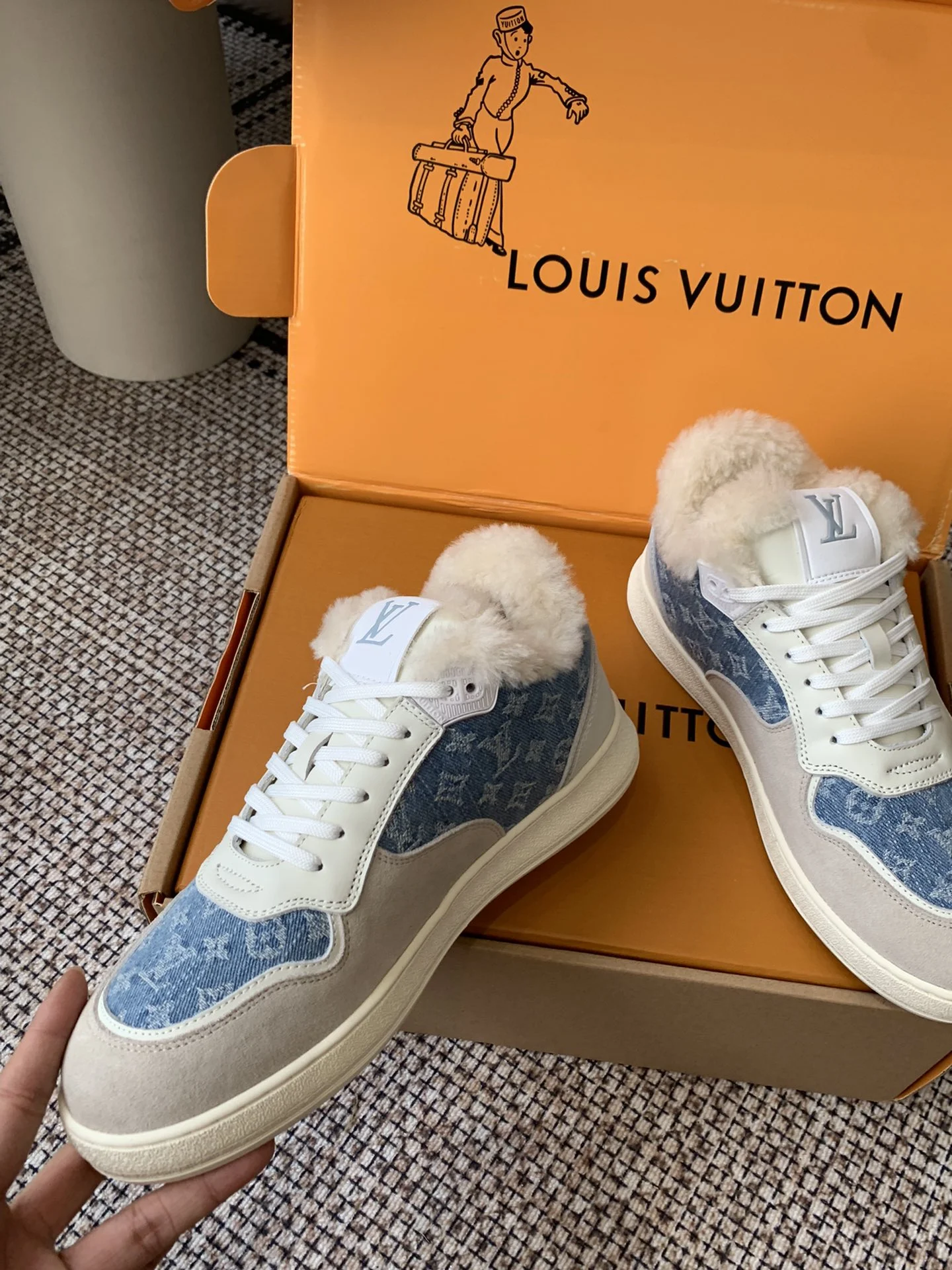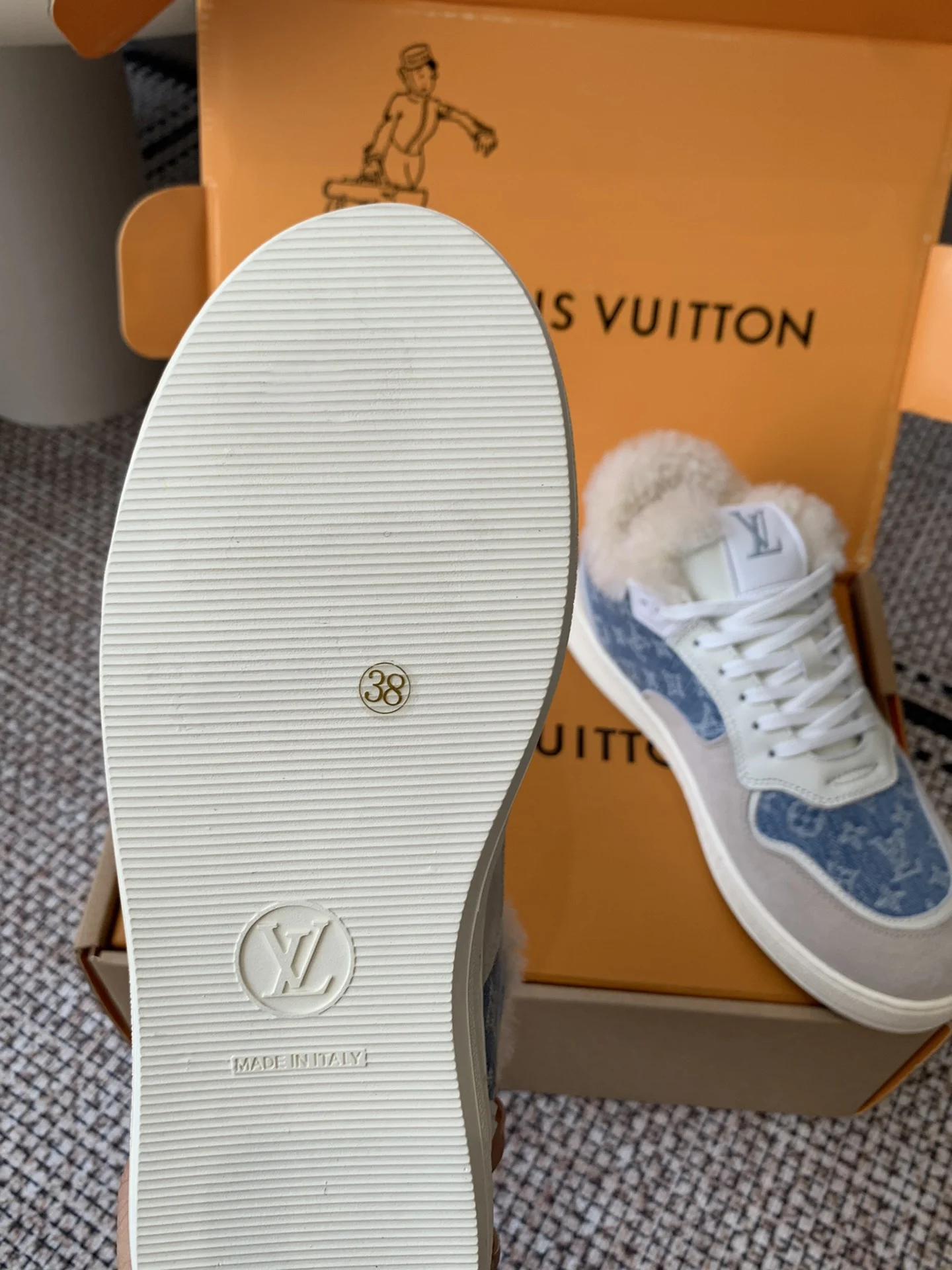 Be the first to review “Louis Vuitton Time Out Sneakers Denim Monogram Wool Lining Size 35-40”