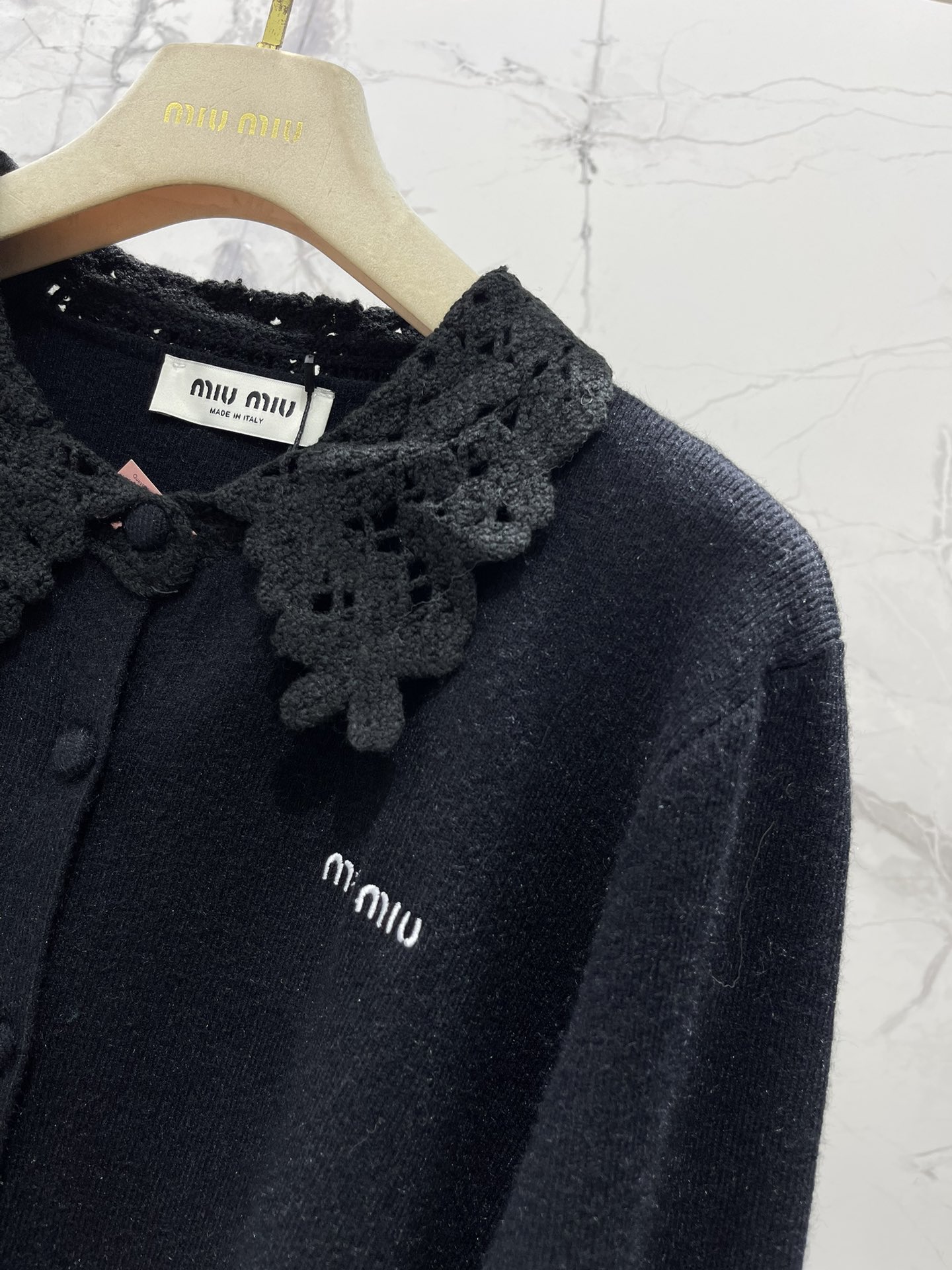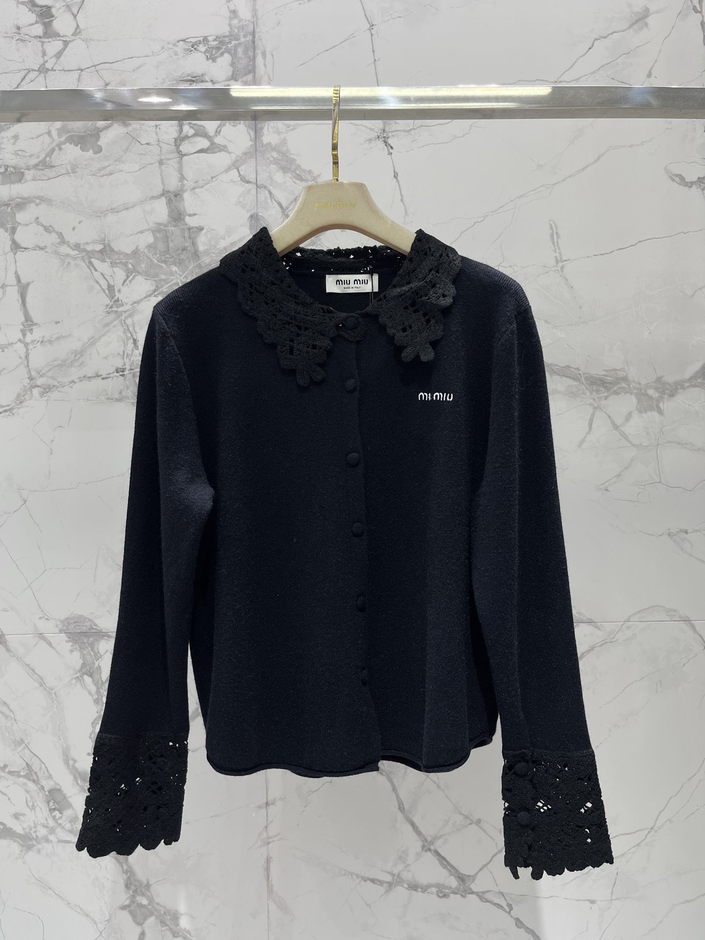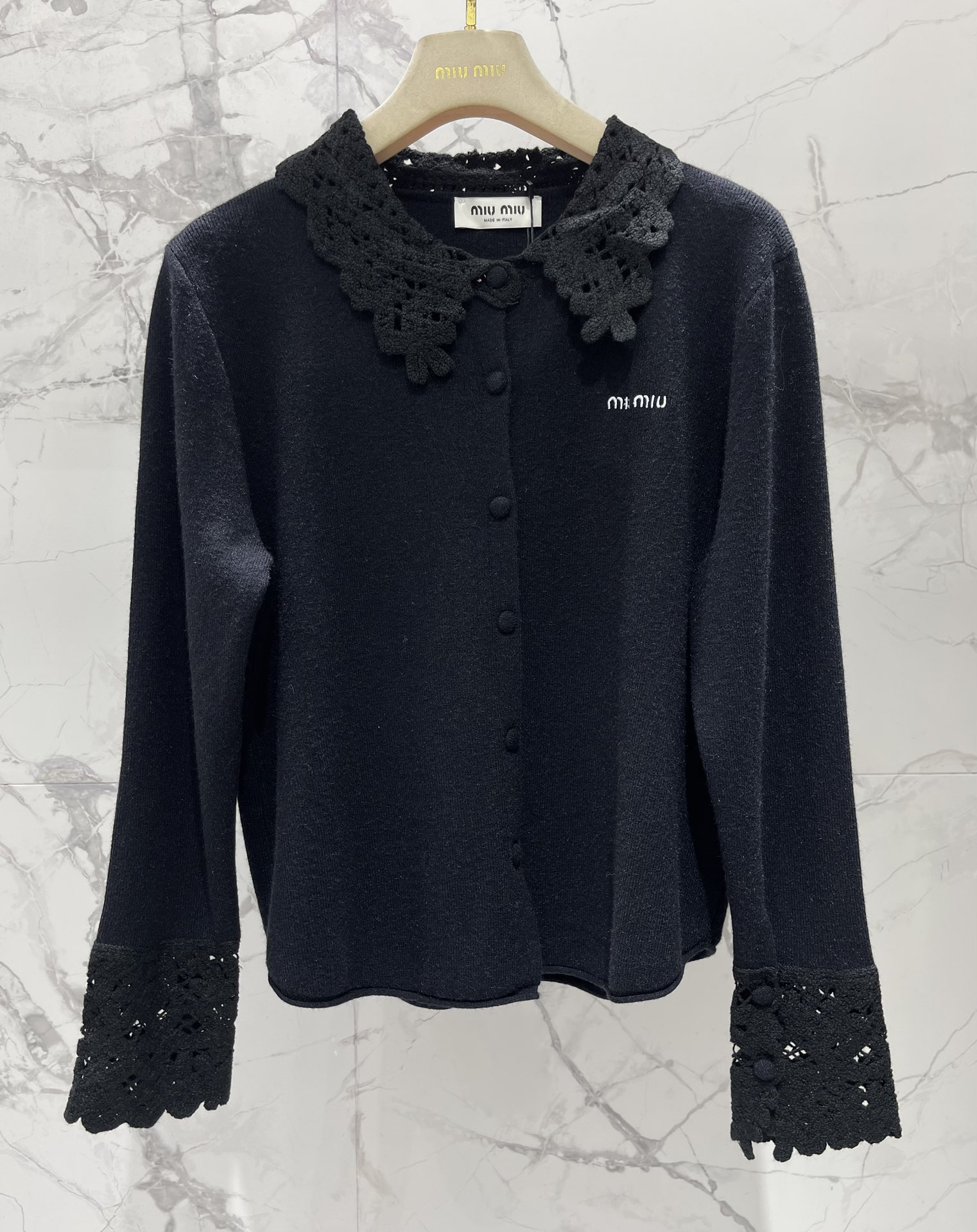 Be the first to review “Miu Miu 25 Fall Winter New Lace Hook-knit Lapel Cardigan”